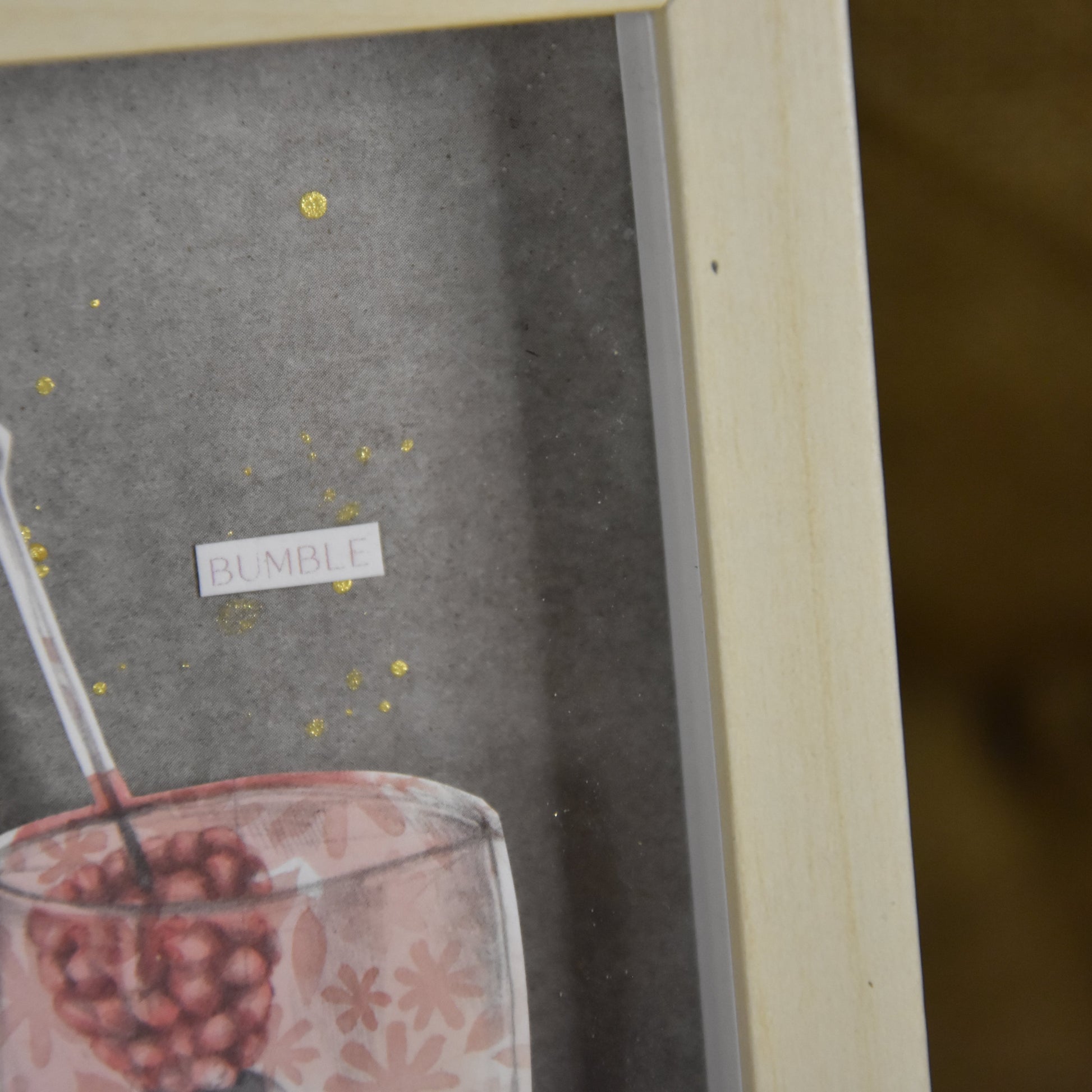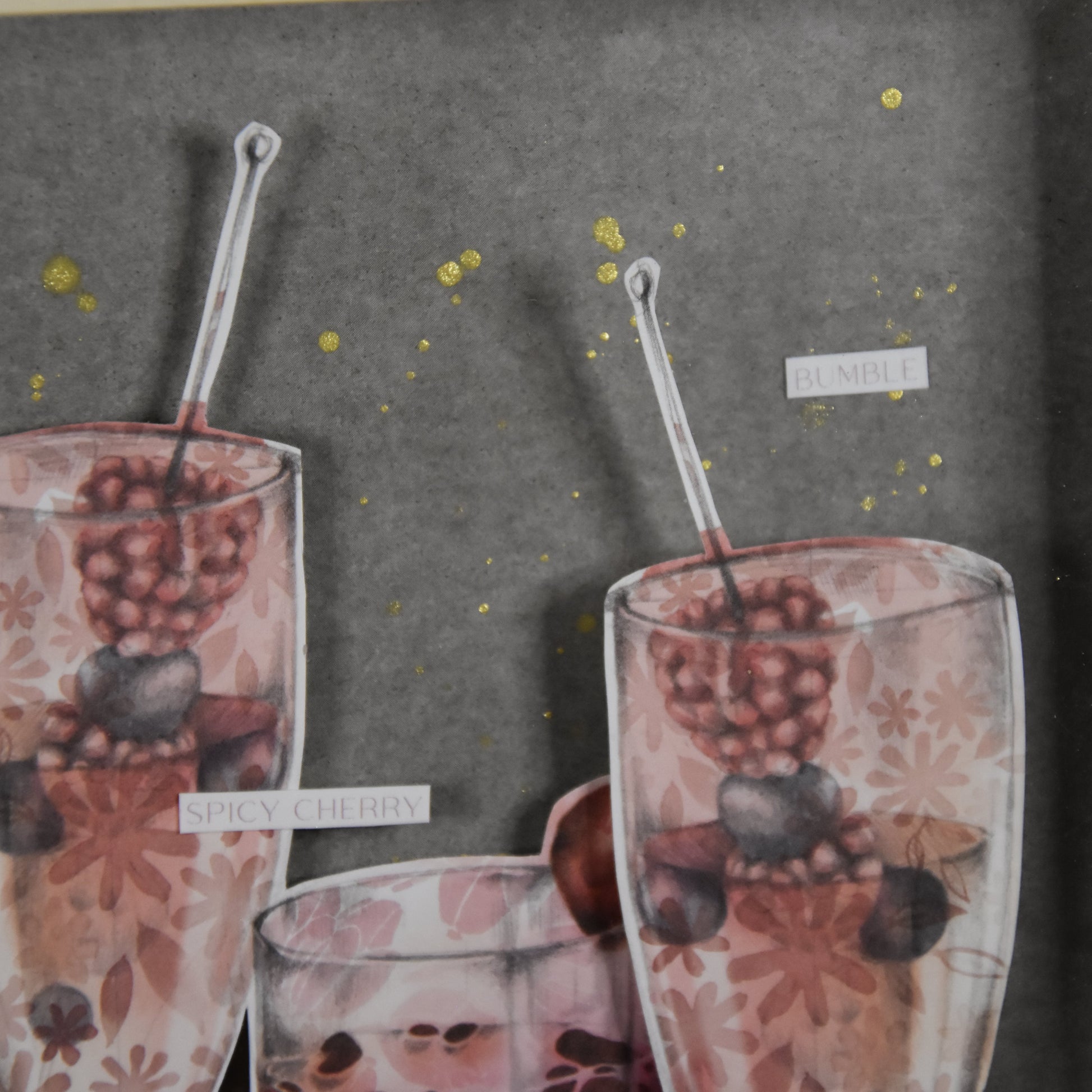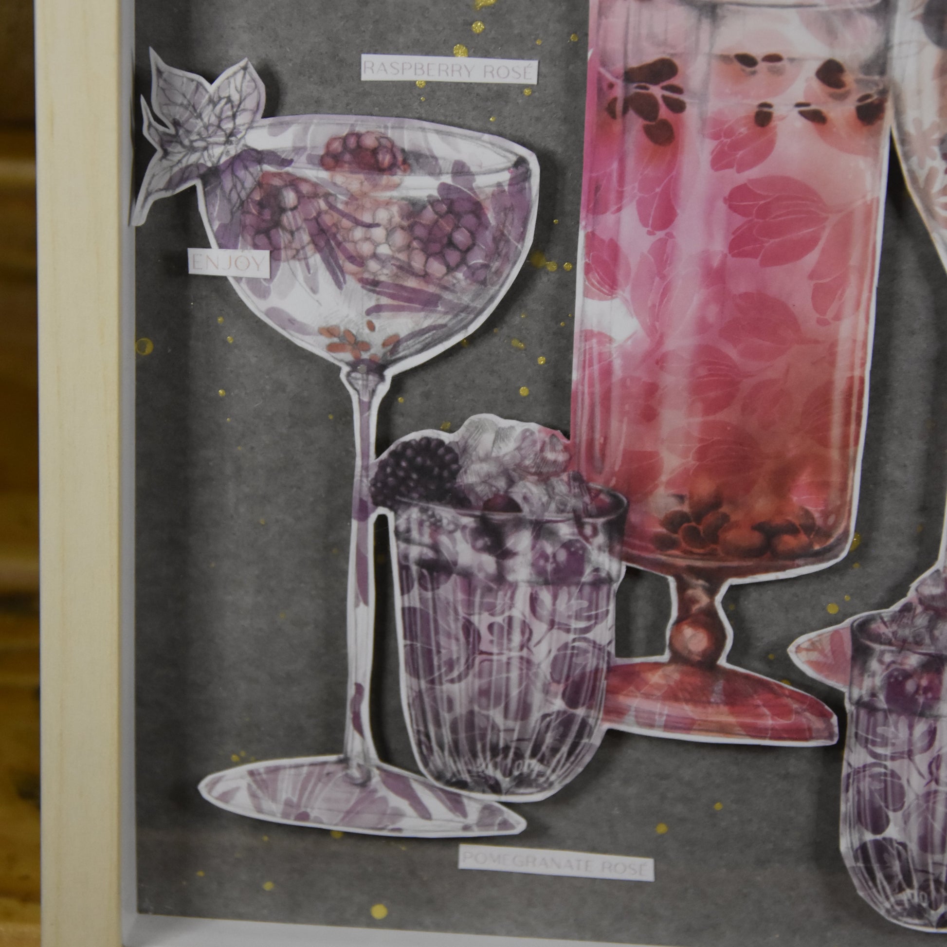 Dieser handgefertigte Bilderrahmen mit einem fröhlichen Cocktail-Motiv in Rosa ist die perfekte Dekoration für deine Küche oder Bar. Mit seinen sorgfältig ausgeschnittenen Details bringt er eine einladende und festliche Atmosphäre in jeden Raum – ideal, um auf schöne Momente anzustossen!