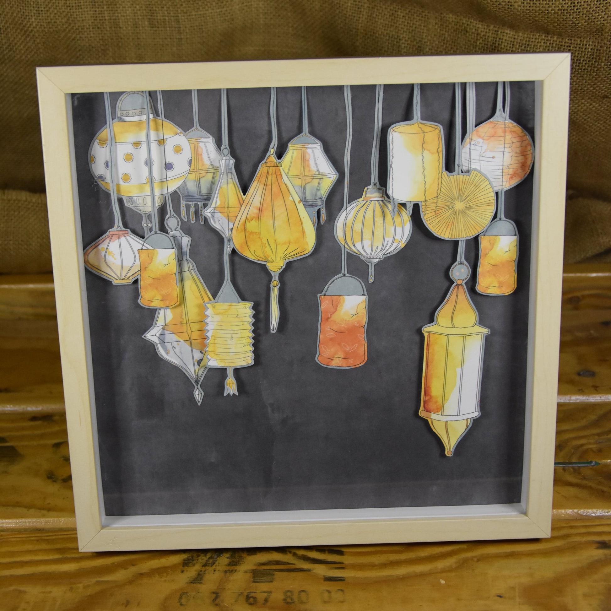 Dieser handgefertigte Bilderrahmen mit einem eleganten orientalischen Lampion-Motiv in gelb ist eine stilvolle Ergänzung für jedes Zuhause. Mit seinen sorgfältig ausgeschnittenen Details und dem warmen Farbton bringt er eine exotische und gemütliche Atmosphäre in deinen Wohnraum.