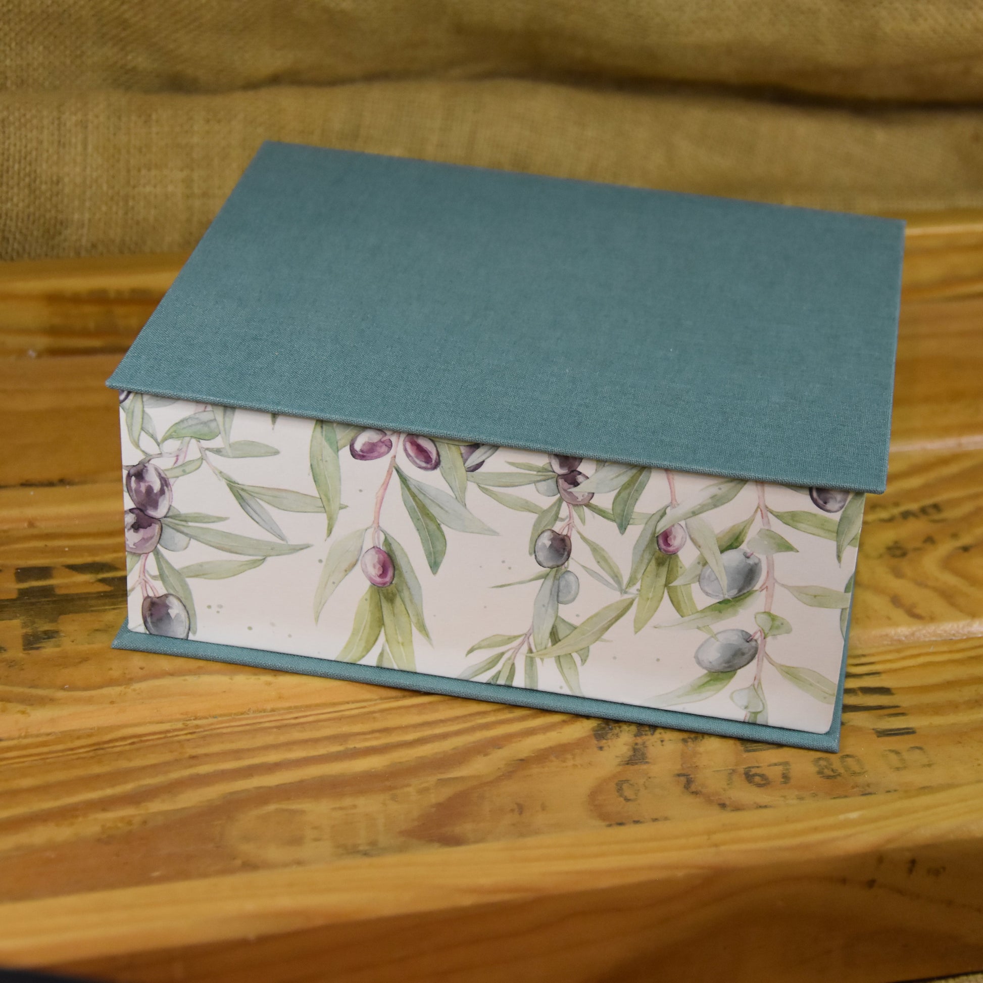 Dieses handgefertigte Schmuckkästchen mit einem eleganten Olivenzweig-Design in beruhigendem Blau ist die ideale Aufbewahrung für deine Schmuckstücke. Die Kombination aus natürlichem Motiv und zeitloser Farbe verleiht deinem Raum eine stilvolle und harmonische Note.