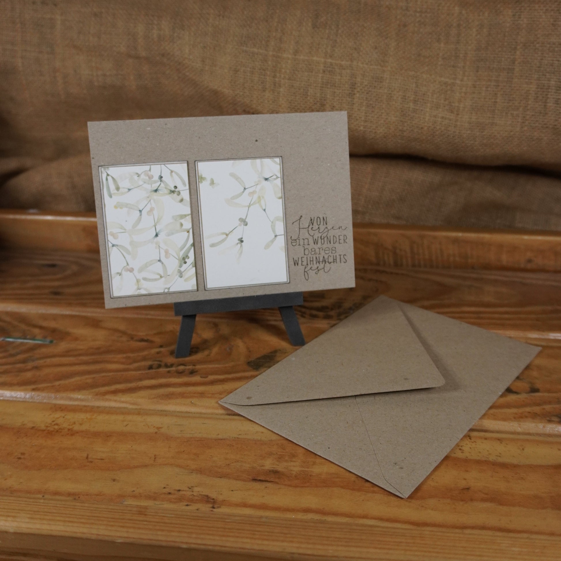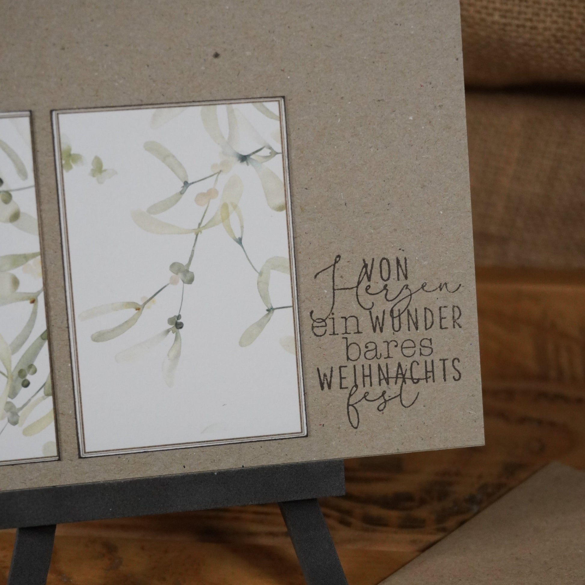 Diese handgefertigte Postkarte mit zartem Mistelzweig-Motiv ist die perfekte Wahl, um Weihnachtsgrüsse stilvoll zu übermitteln. Ob als liebevolle Geste, als Beilage zu einem Geschenk oder als persönlicher Gruss – sie bringt festliche Stimmung und Wärme in jedes Herz.